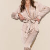 The Nova Pyjama Set is a refined wrap-style design crafted from smooth, silky satin. Designed to be worn your way, the adjustable wrap top features elegant contrast piping and a waist tie for a flattering, customizable fit.