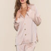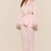 The Celia Pyjama Set is a refined design crafted from smooth, silky satin. The wrap-style top features a clean waist tie and subtle tulle detailing at the cuffs, adding a soft and elegant finish.